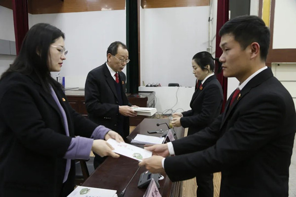 接着,郭晨琳组长、唐国建副院长向干警代表赠送《清廉家风润香城》廉政书籍。